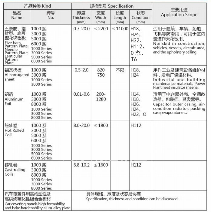 一、 1000系列代表 1050 1060 1070 1000系列铝板又被称为纯铝板,在所有系列中1000系列属于含铝量多的一个系列。纯度可以达到99.00%以上。由于不含有其他技术元素,所以生产过程比较单一,价格相对比较便宜,是目前常规工业中常用的一个系列。目前市场上流通的大部分为1050以及1060系列。1000系列铝板根据后两位数字来确定这个系列的含铝量,比如1050系列后两位数字为50,根据牌号命名原则,含铝量达到99.5%以上方为合格产品。我国的铝合金技术标准(gB/T3880-2006)中也明确规定1050含铝量达到99.5%.同样的道理1060系列铝板的含铝量达到99.6%以上。五、5000系列 代表5052.5005.5083.5A05系列。5000系列铝板属于较常用的合金铝板系列,主要元素为镁,含镁量在3-5%之间。又可以称为铝镁合金。主要特点为密度低,抗拉强度高,延伸率高。在相同面积下铝镁合金的重量低于其他系列.故常用在方面,比如油箱。在常规工业中应用也较为广泛。加工工艺为连铸连轧,属于热轧铝板系列故能做氧化深加工。在我国5000系列铝板属于较为成熟的铝板系列之一。